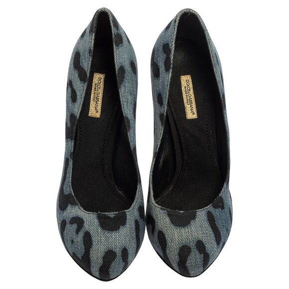 Step out in bold designer style with these Pre-Owned Dolce & Gabbana Blue Leopard Print Denim Pumps, the perfect blend of high-fashion edge and luxe Italian craftsmanship. Crafted from premium blue denim with an eye-catching leopard print, these pumps bring a daring yet sophisticated look to any outfit. Designed with a sleek pointed toe and elevated on chic high stiletto heels, they create a striking silhouette that enhances both day and evening looks. The leather-lined insoles add comfort and quality, while the slip-on design ensures effortless wear. These statement heels are a must-have for fashion lovers seeking a standout shoe that pairs beautifully with dresses, skirts, or fitted denim.